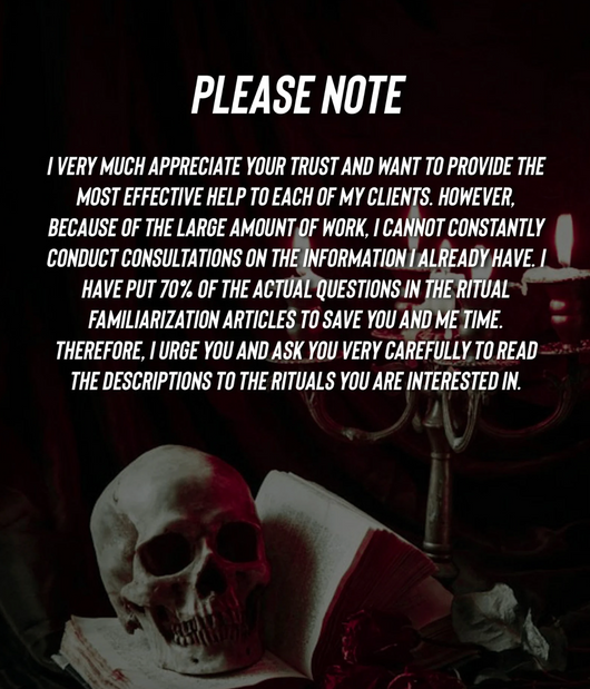 4. I will let you know after the ritual and send you a photo as confirmation. NO PHYSICAL OBJECT WILL BE SENT TO YOU.