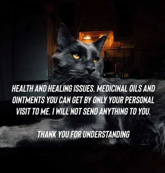 3. Health and wellness issues, healing oils and ointments you can get ONLY by a personal visit to me. I will not ship anything to you.