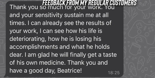 Unfortunately, I can only do a limited number of Rites of this level per year. If I do it more often I will lose the balance of my Power. That's why I ask you to be understanding if I ask you to wait before applying the Seal. I will definitely help you to punish your enemy and repay him with an imminent Kara that brings pain and unhappiness into your life! Write to me if you feel that Retribution can heal your wounds.