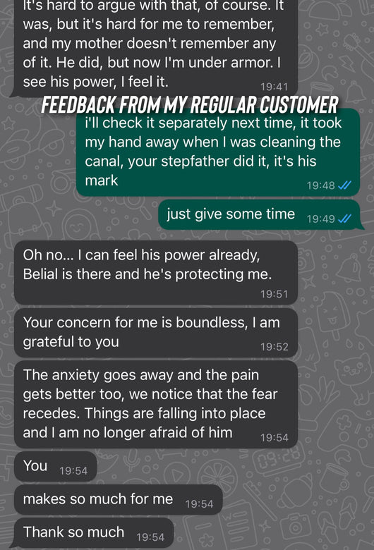 Often witches and sorcerers cunningly and under the guise of a village evil eye, seal the strongest generic spoilages. That is why I need to feel the power and level of influence on you before starting the ritual. I use my gift of "probing" and read the layers of influences. Layer by layer, I dig down to the truth. Then it's easier for me to tell the demon what level of protection we need.